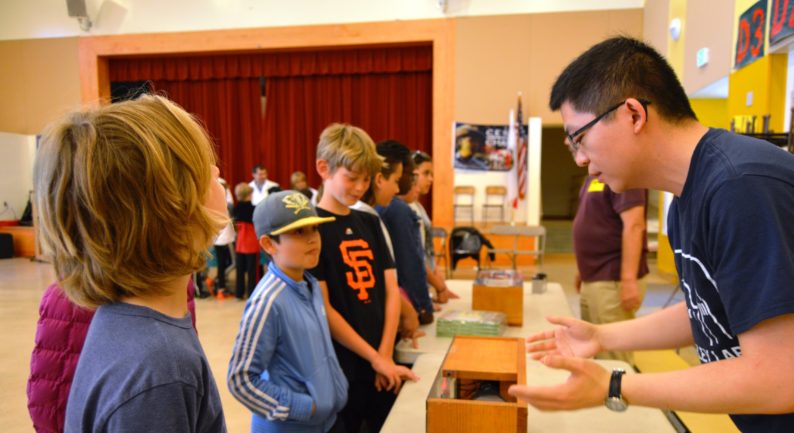 JBEI’s Danny Tang volunteered on June 1 at the Science Day organized by the Community Resources for Science at a local Oakland elementary school. Danny partnered with Howard Matis, a Berkeley Lab Physicist to run an experiment about cosmic rays which involved custom built detectors. Danny and Howard saw three elementary classes and interacted with 90 students!