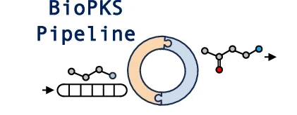 BiOPKS pipeline uses both multifunctional type I polyketide synthases (PKSs) and monofunctional enzymes for chemical biosynthesis. The platform is built upon two key rule-based components – RetroTide and DORAnet. When a user inputs a target structure, RetroTide first suggests chimeric PKS designs to synthesize the carbon backbone of this target. DORAnet then performs enzymatic post-PKS decorations of the PKS product to reach the target chemical. If an integrated PKS and post-PKS pathway design is found, the user can collect this design from BioPKS pipeline for future experimental synthesis in the laboratory.