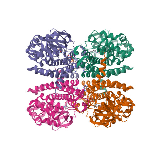 Javidpour P, Pereira JH, Goh EB, McAndrew RP, Ma SM, Friedland GD, Keasling JD, Chhabra SR, Adams PD, Beller HR: Biochemical and Structural Studies of NADH-Dependent FabG Used to Increase the Bacterial Production of Fatty Acids under Anaerobic Conditions. Appl Environ Microbiol. 2014, 80:497-505PDB IDs: 4NBT [Diffraction data] 4NBU [Diffraction data] 4NBV [Diffraction data] 4NBW [Diffraction data]